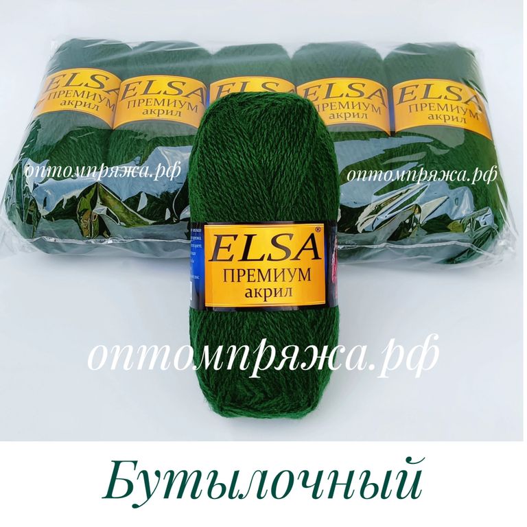 Акрил в клубках "ЭЛЬЗА" Премиум ЦВЕТ Бутылочный. ЦЕНА ЗА УПАКОВКУ (В УПАКОВКЕ 5 КЛУБКОВ) 290 РУБЛЕЙ.